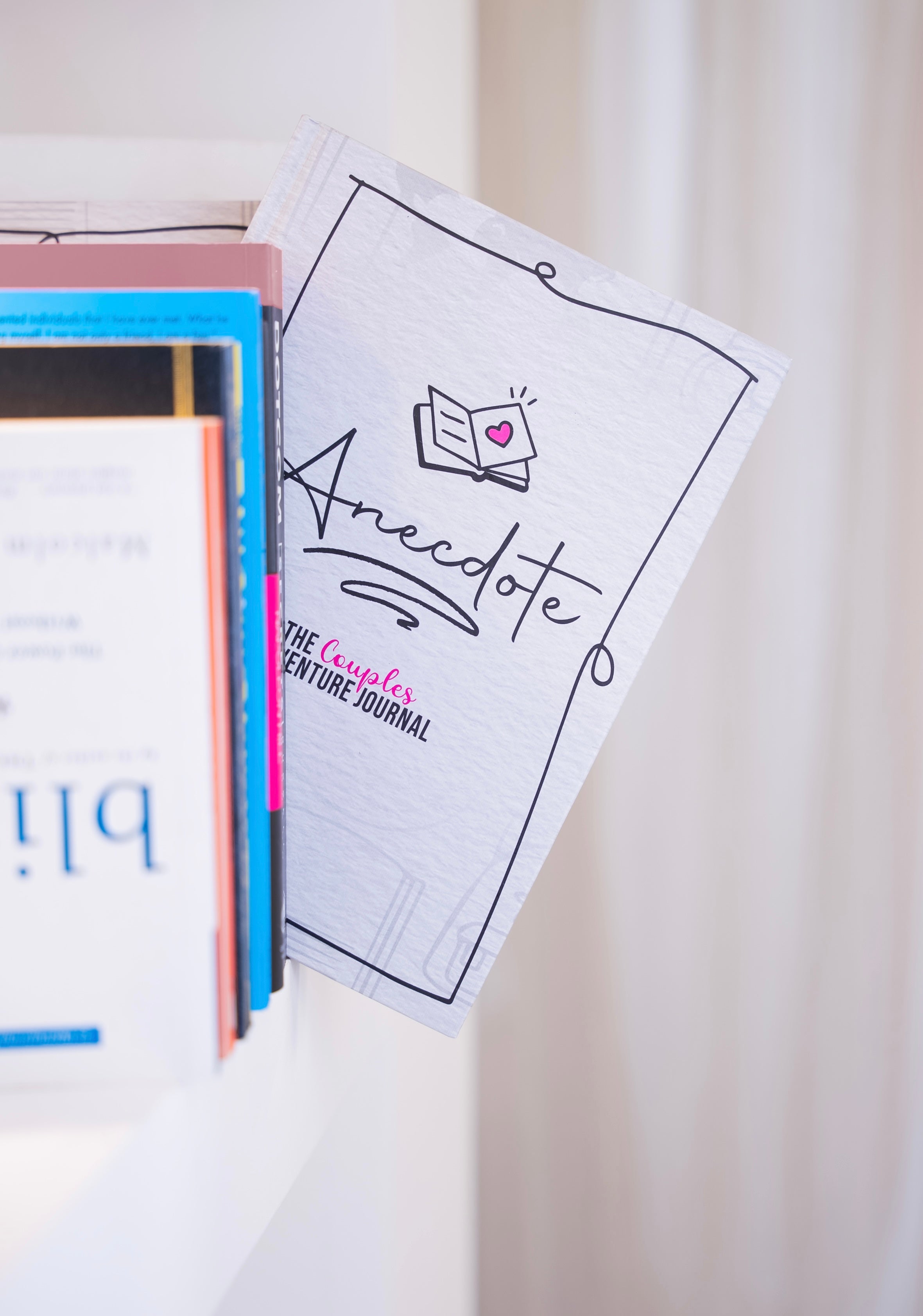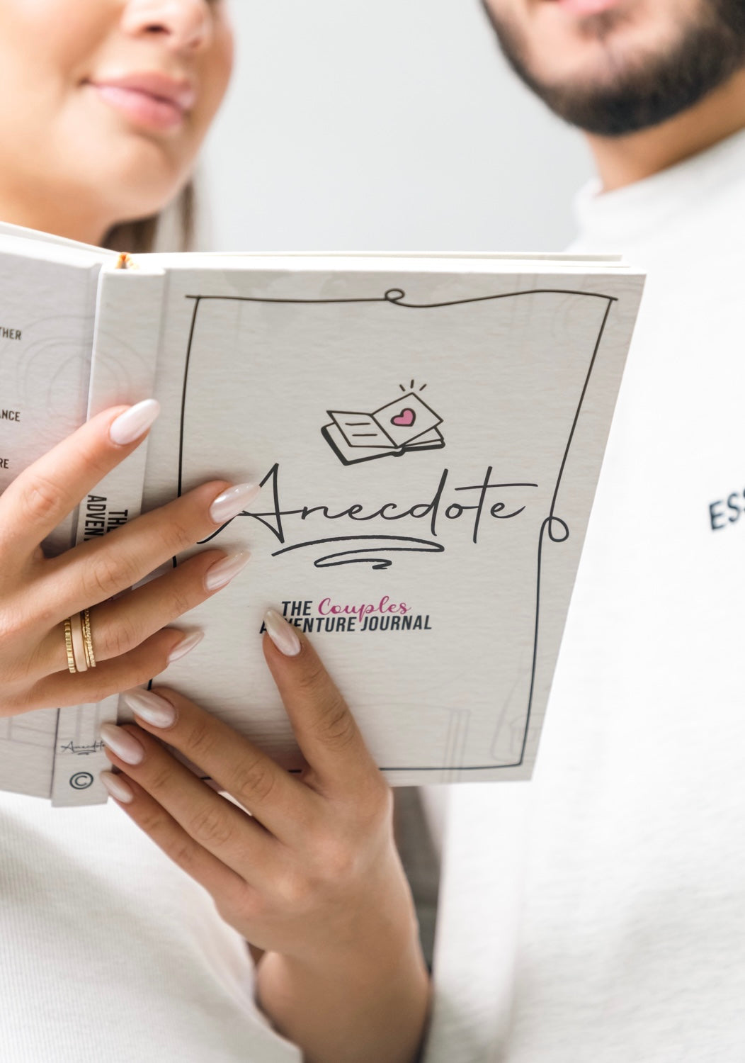 "Anecdote" is a unique couples' journal designed for shared adventures. It features scratch-off prompt.